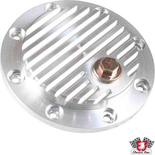 Oil sump cover with drain plug without gasket. Made of CNC machined aluminium
