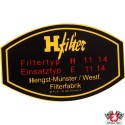 Sticker, "H filter, Filtertyp H 11.14, Einsatztyp E 11.14"