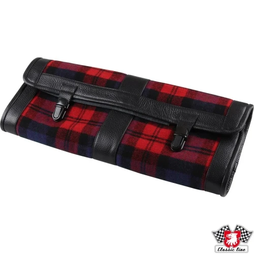 Tool pouch, black leather with red/blue scots pattern, without tools